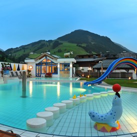 - Beschreibung der Hotelausstattung: Für Ihren Wohlfühl-Urlaub finden Sie bei uns: 2 In- und 3 Outdoor Pools, Saunawelt sowie Massage-Studio, Baby- und Kinderclub, Außen-Grünspielbereich, Softplay-Anlage ...