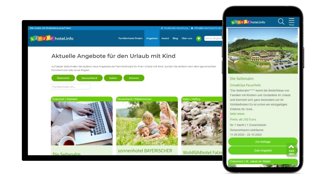 - Angebote auf der Seite für Familieurlaubs-Angebote und im Blog präsentieren